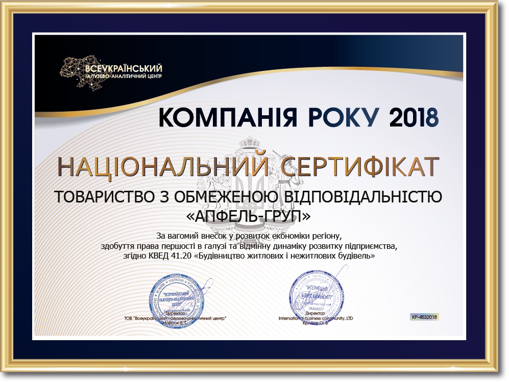 Apfel Group получил звание "Компания Года 2018" за существенный вклад в развитие економики региона, а также право первенства в отрасли и положительную динамику развития предприятия.